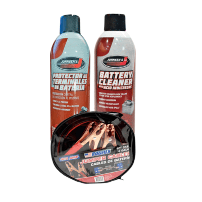 Cable pasa corriente ABRO, 400 MP, 1.8 Mts + Protector de terminal de batería 10oz JOHNSEN´S + Limpiador de Terminales de Batería 10oz, JOHNSEN´S
